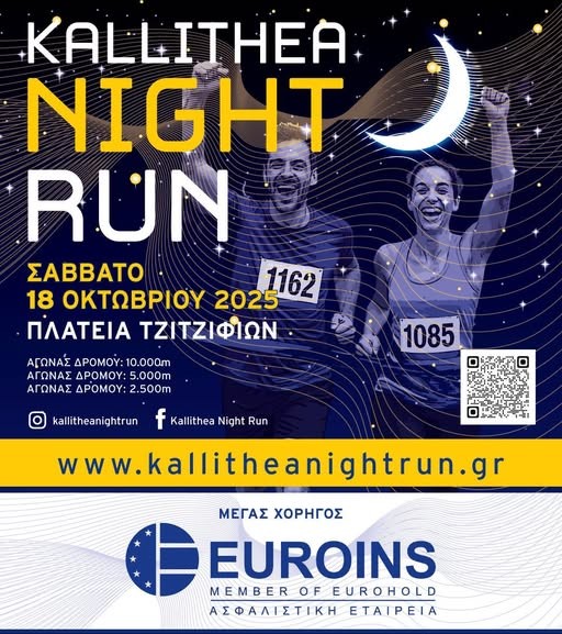 Με πάνω από 3.000 χιλιάδες δρομείς και τεράστια επιτυχία πραγματοποιήθηκε το 9ο Kallithea Night Run το Σάββατο 18 Οκτωβρίου 2025 με εκκίνηση και τερματισμό στην Πλατεία Τζιτζιφιών!